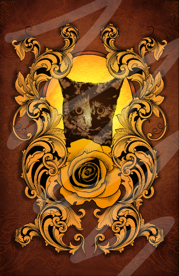 Gold Filigree. Lucky 13 Black Cat.