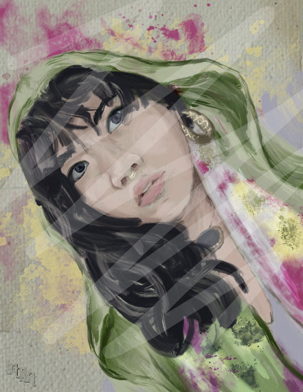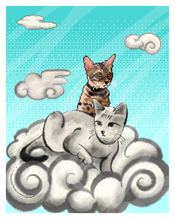 Commission to draw a portrait of a cat. They told me "you're the artist, come up with a style."