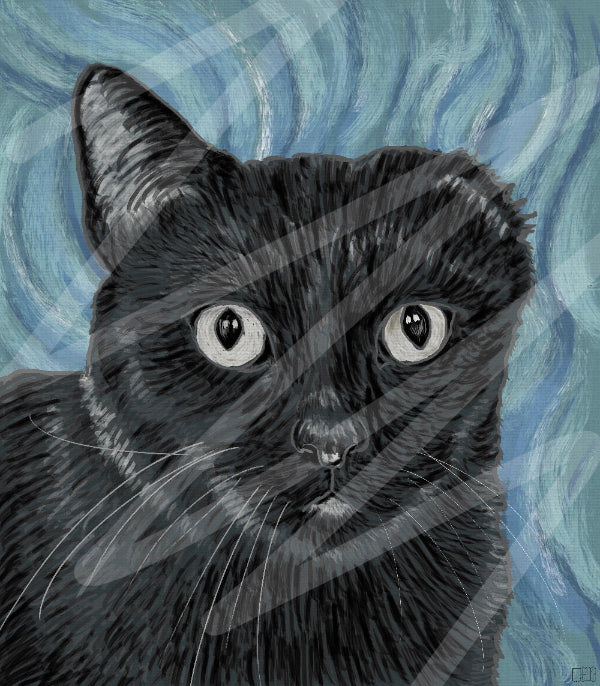 Portrait of someone's cat from Reddit. It's missing an ear. Name's Vincent. Kind of had to do the picture in this style.